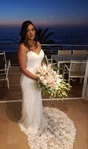 Wedding gowns, bridesmaid dresses, flower girl dresses, matric farewell gowns, and custom designs. With expert craftsmanship, she ensures every dress is tailored to perfection, offering high-quality alterations to enhance fit and style. Her passion for design and attention to detail make her the ideal choice for those seeking elegant, unique, and beautifully crafted garments for their special occasions. In addition, alterations can be made as well as cleaning of wedding dresses.